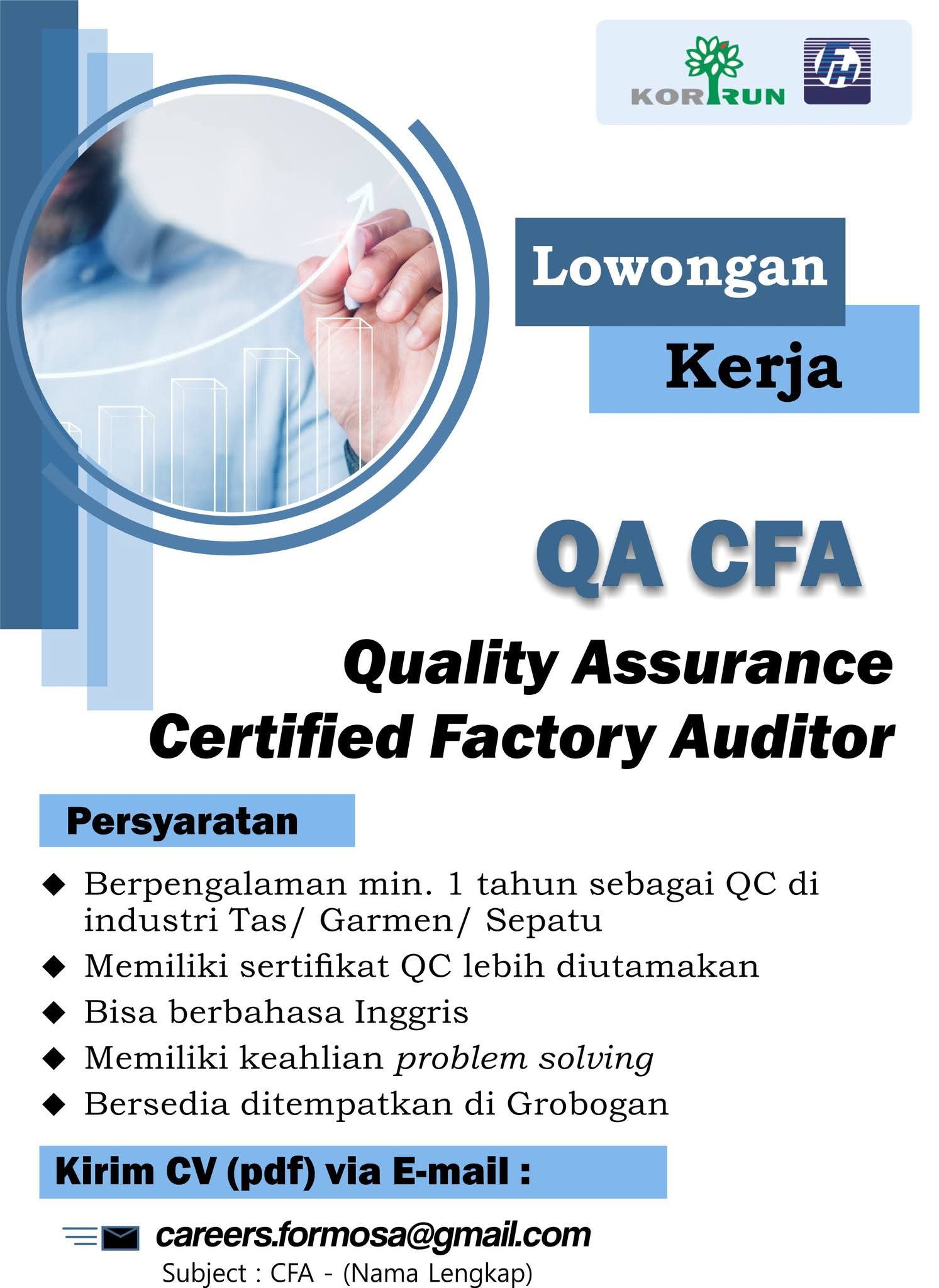 Lowongan QA CFA β Quality Assurance Certified Factory Auditor
