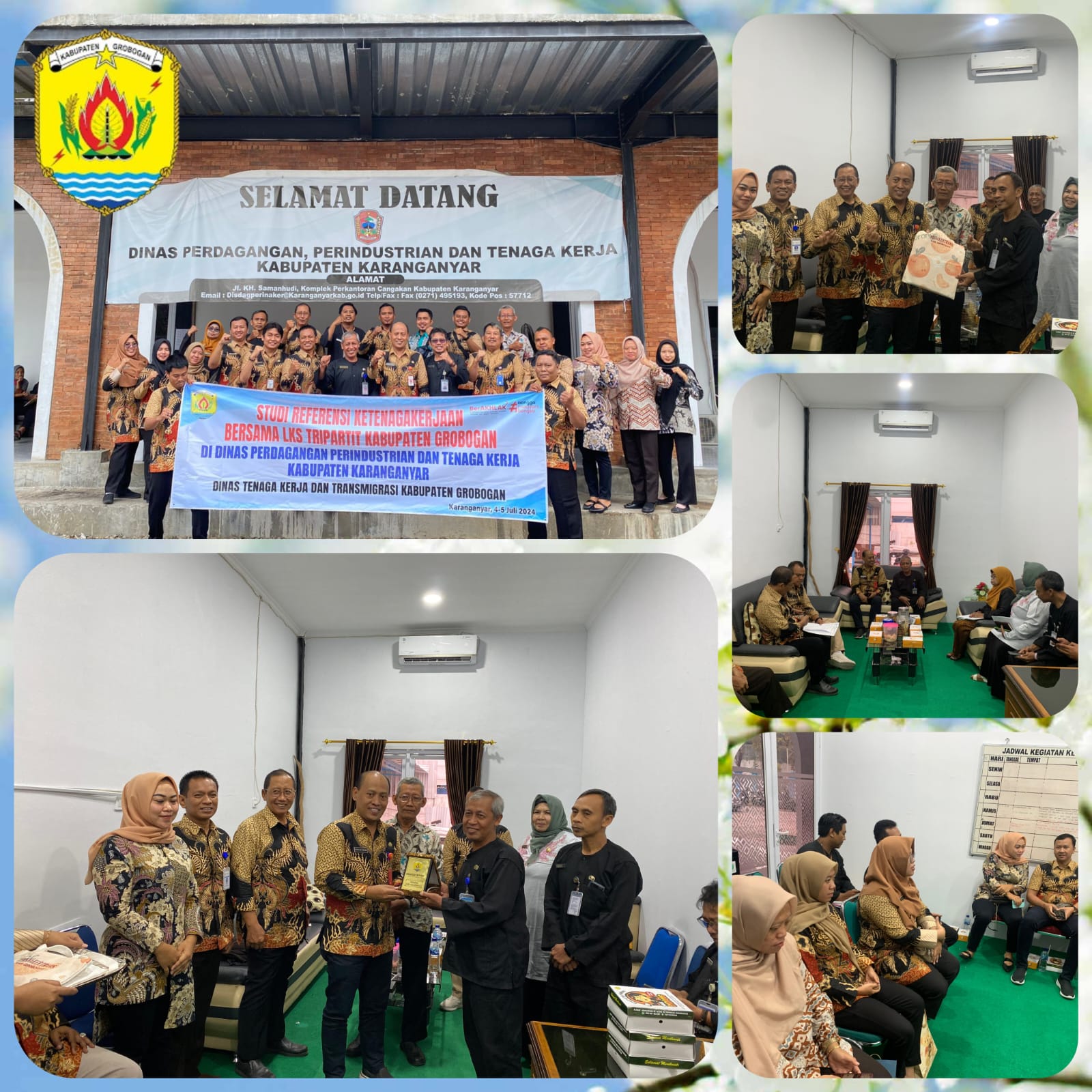 Dinas Tenaga Kerja dan Transmigrasi Kabupaten Grobogan mengadakan Studi Referensi Ketenagakerjaan Bersama LKS Tripartit Kabupaten Grobogan di Dinas Perdagangan Perindustrian dan Tenaga Kerja Kabupaten Karanganyar, 4 Juli 2024.